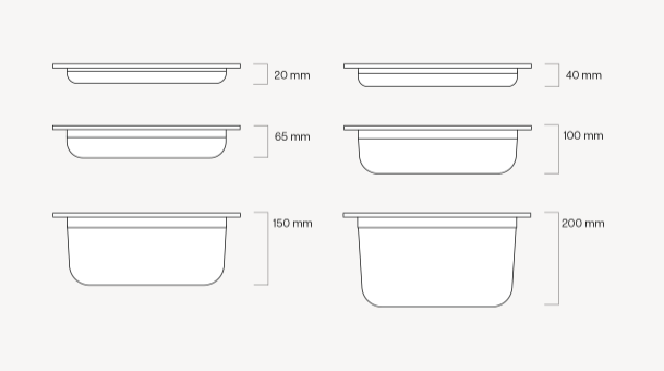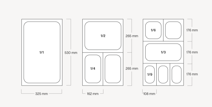 Gastronorm, shortened GN, is a standardization of measurements that enables the combination of pans, inserts, molds, lids, etc., in different sizes as needed. This flexibility allows for consistent use of various products in professional kitchens and simplifies the handling and efficiency in cooking, storage, and serving.